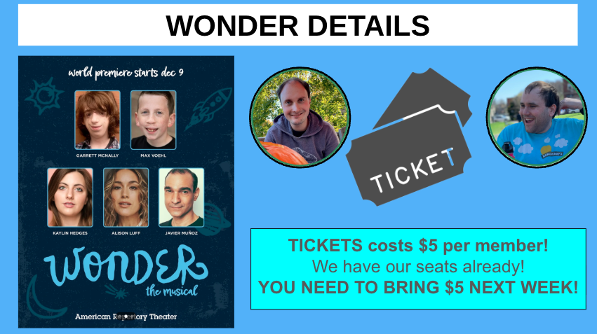 “When there are versions of a story like a book, film, and musical, it offers multiple ways to deepen the meaning. When comprehension is thorough, there is so much more to talk about and explore. Members really know Wonder, and the musical angle reinforced it.”